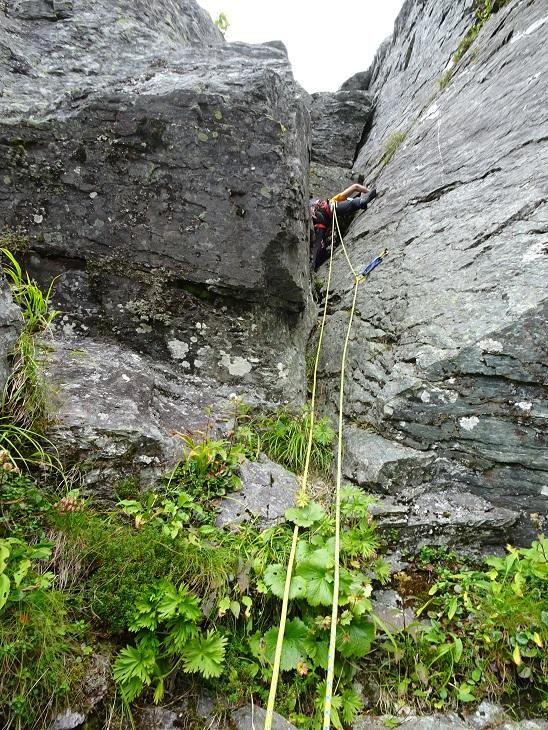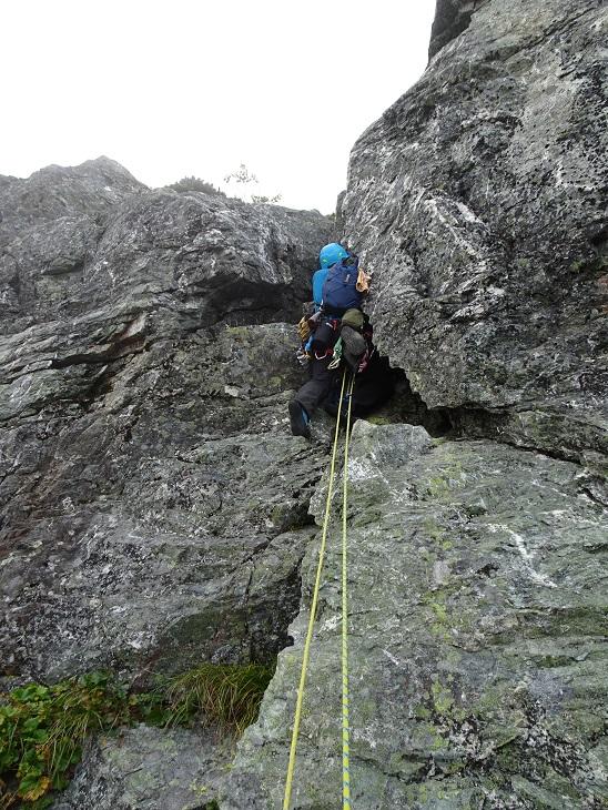 奥壁での4P目のチムニーに苦戦して、城塞ハングの登攀終了時点で、