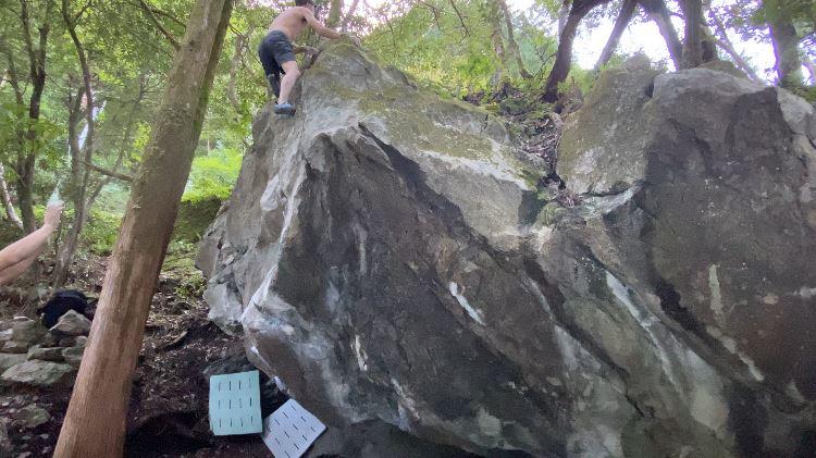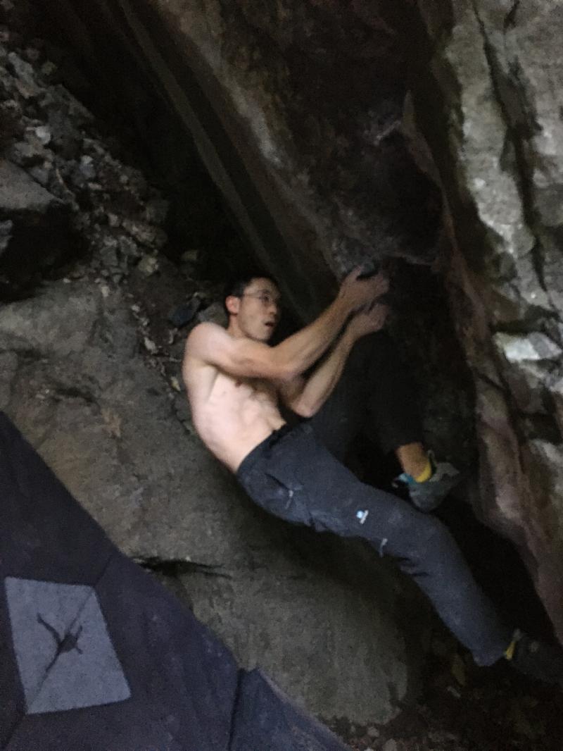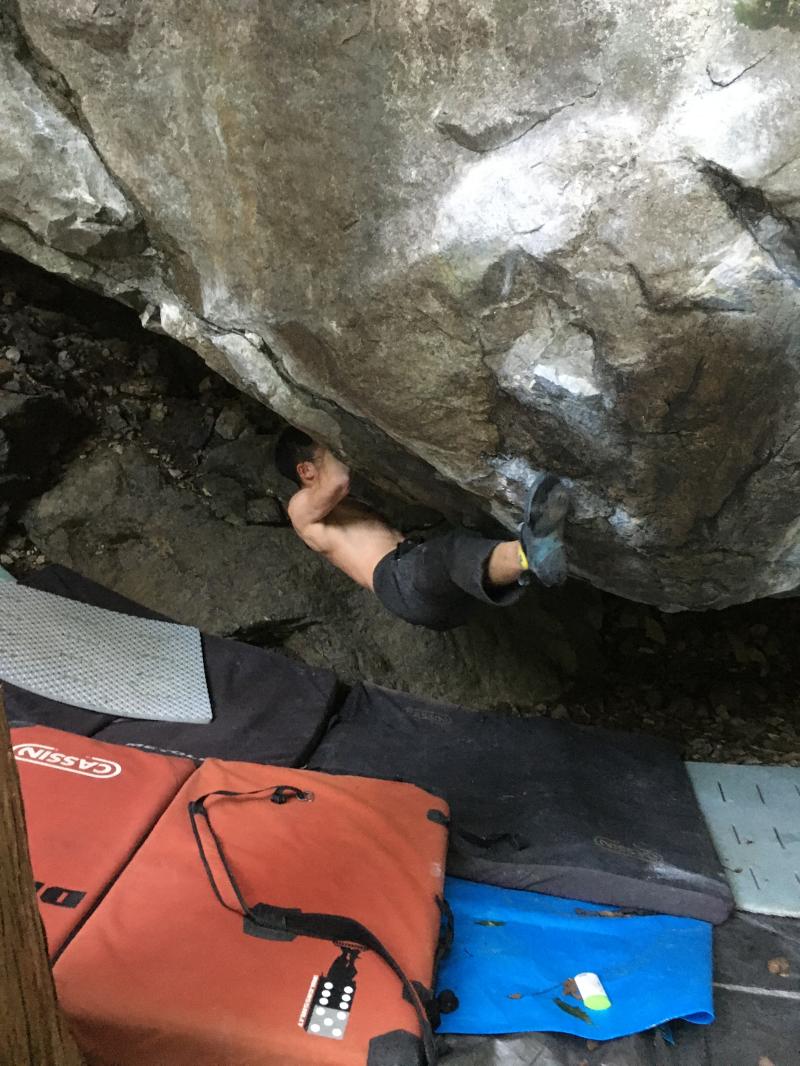 隣の岩にある「POP」2段は下地もホールドも登れる状態でしたが、それしかないので別のエリアも見てみることに。