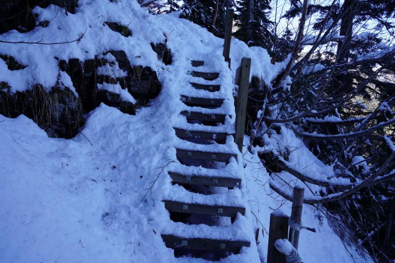 - コース中腹のまめうち平付近から積雪あり。チェーンアイゼンあるいは軽アイゼンを持っておくと良いと思います。