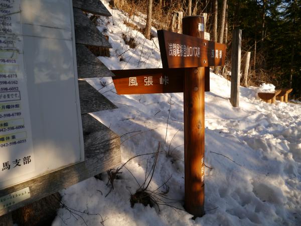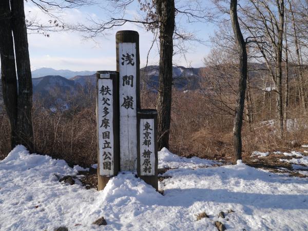 - 浅間尾根登山口バス停-20分-登山道入り口-25分-浅間尾根-5分-サル石-30分-人里峠-30分-浅間嶺-15分-小岩分岐-30分-峠の茶屋-10分-時坂峠-30分-払沢の滝-15分-払沢の滝入口バス停