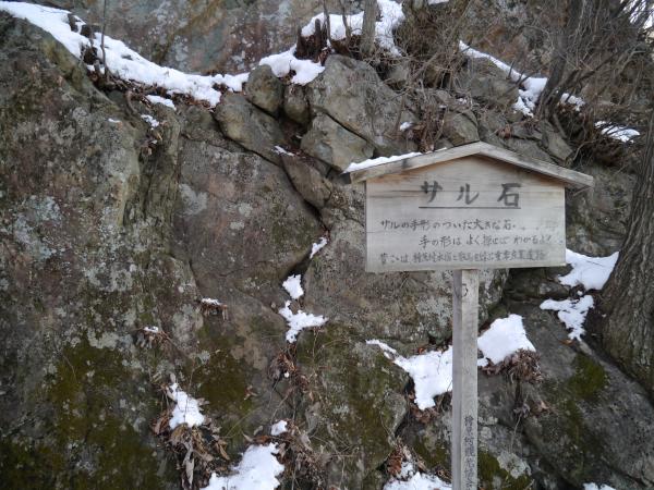 尾根まで登り5分ほどでサル石と呼ばれる岩が現れます。どこかにサルの手形があるらしいのですが、見つけられませんでした。