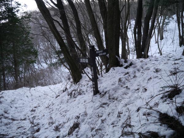 なだらかなアップダウンを繰り返し、左浅間嶺・右尾根道を経て浅間嶺・休憩所の道標が出てきました。もちろん尾根道を忠実にたどりたいので右に進みます。