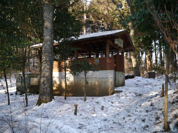 急な坂道を頑張って登ってピークを越えおりていくとトイレとあずま屋がある広場に出ます。ここで小休