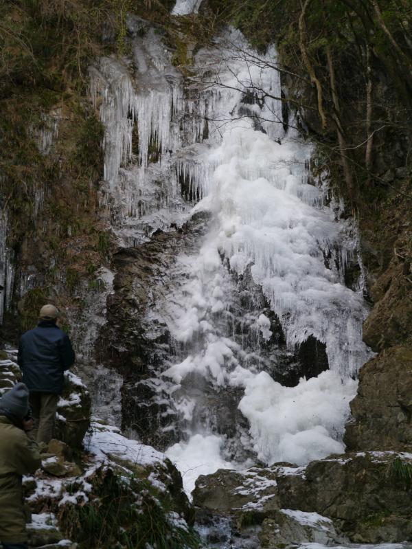 林道と登山道を交互に進むとトイレのある払沢の滝の分岐に着きます。トイレ前を右に10分ほど行くと・・・見事に氷結した払沢の滝が現れました!!すごい!思っていた以上に凍っていたのでビックリ!