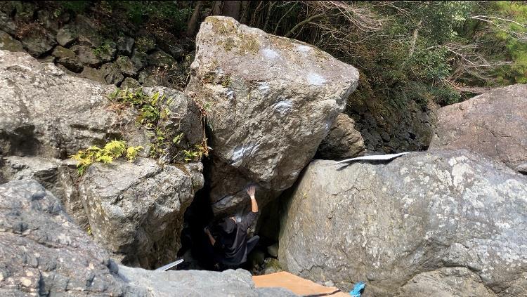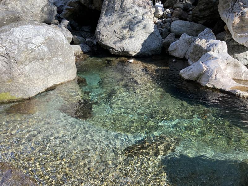 - 川辺には急斜面を下っていくのでアプローチシューズ推奨。