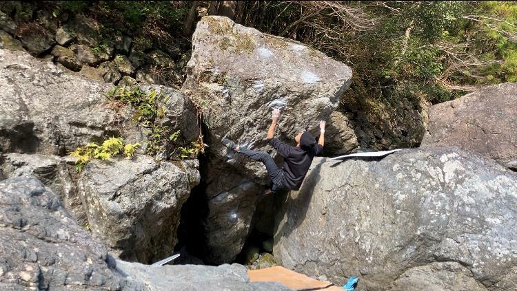 ⑤この日の1トライ目でRP。通算4日打っていましたが登れる時はあっさり。