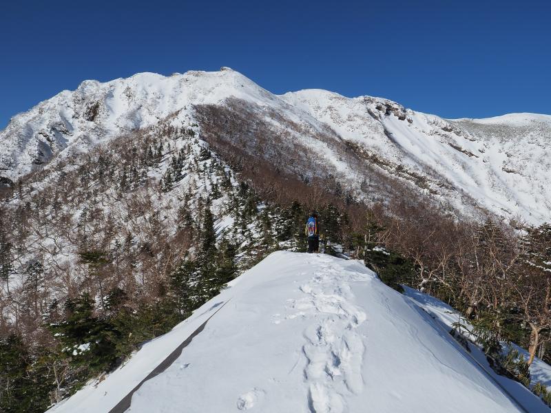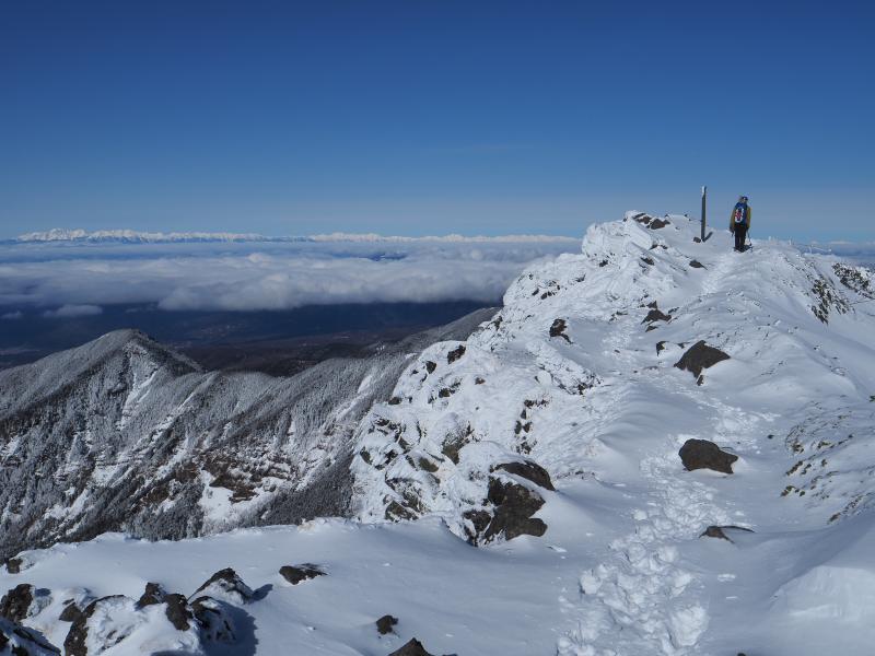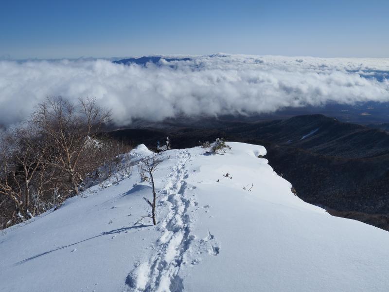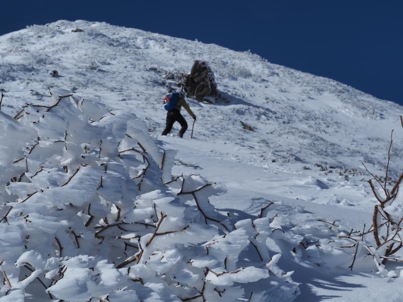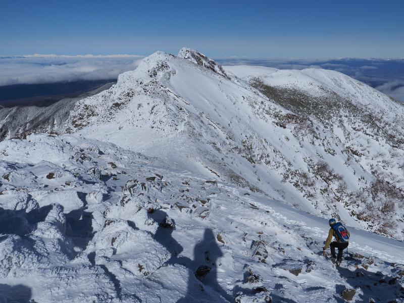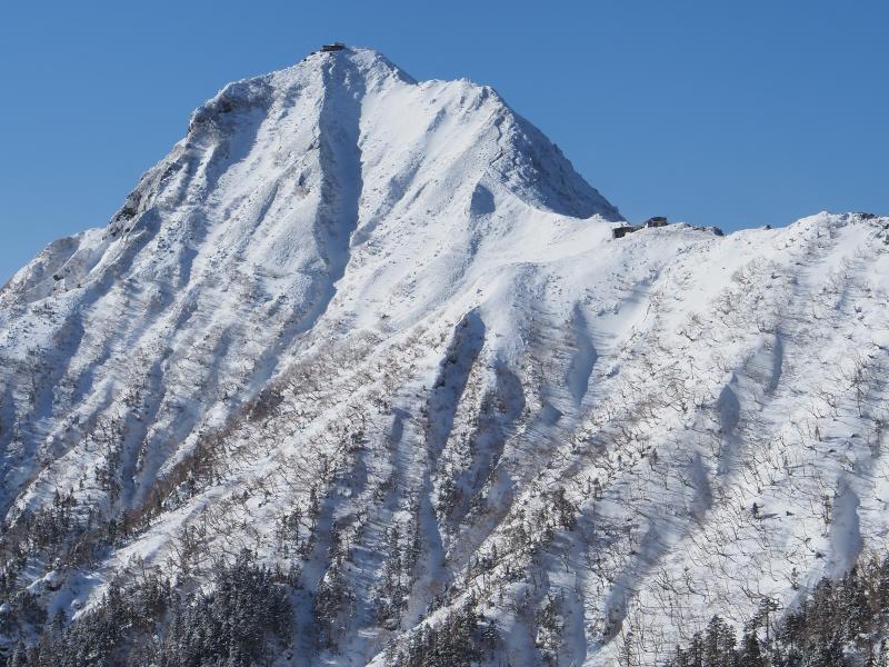 樹林帯が少し長く単調な登りですが、森林限界以上の景色は抜群。西の登山口よりは人も少ないです。もうちょっと曇ってしまうかと思いましたが、良い方に天気が進んで絶景・久々の雪山登山を堪能できました♪