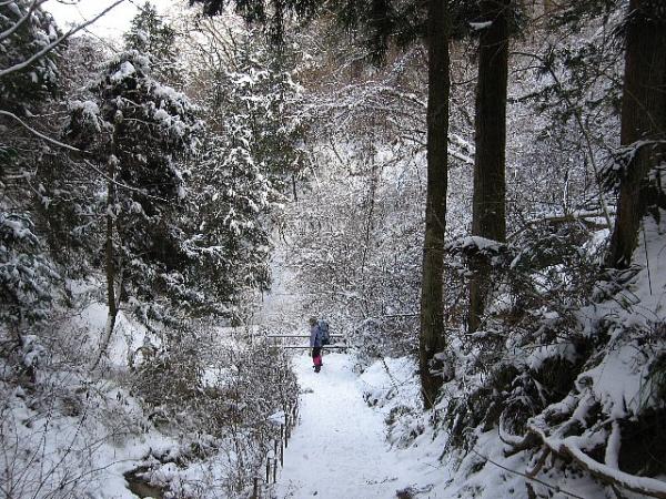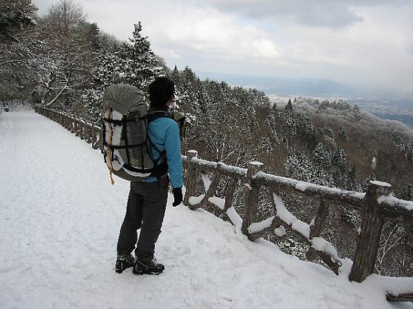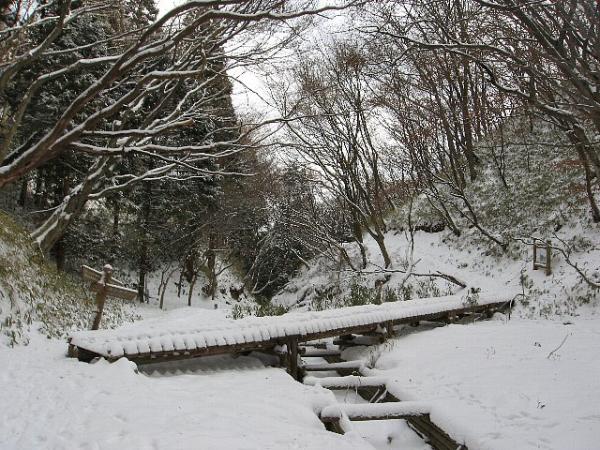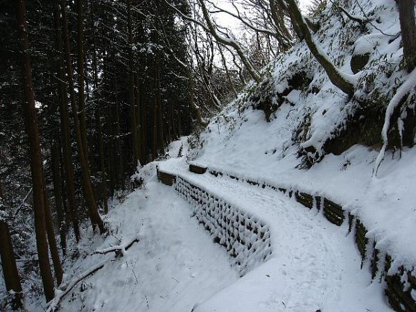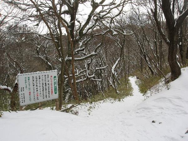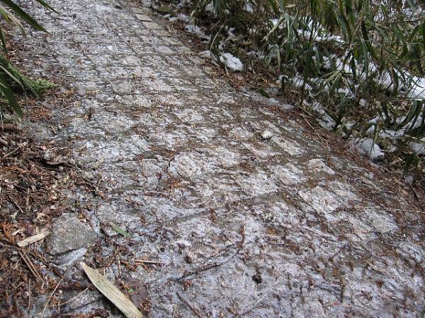 - 当日は寒波がしばらく続いた後の日でした。登山道に入ってすぐに凍り始め10分も歩くと積雪がありました。
