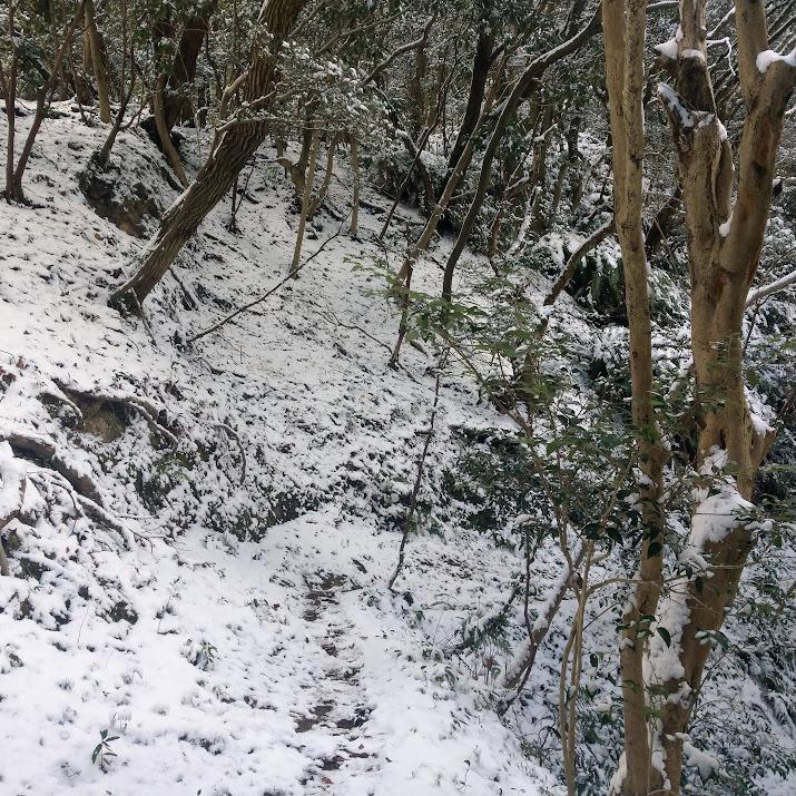 - 塩屋の街がアイスバーン状態でした。登山道までスパイク付けました。