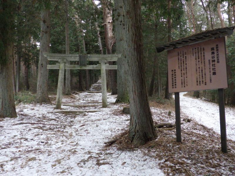- 駐車場(5分)高鳥谷神社(30分)高鳥谷山(20分)高鳥谷神社(5分)駐車場