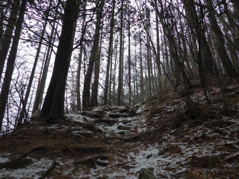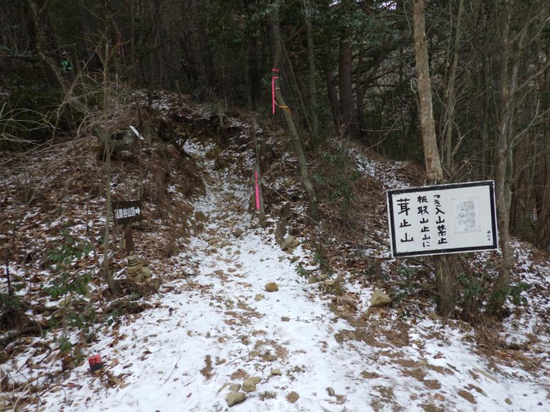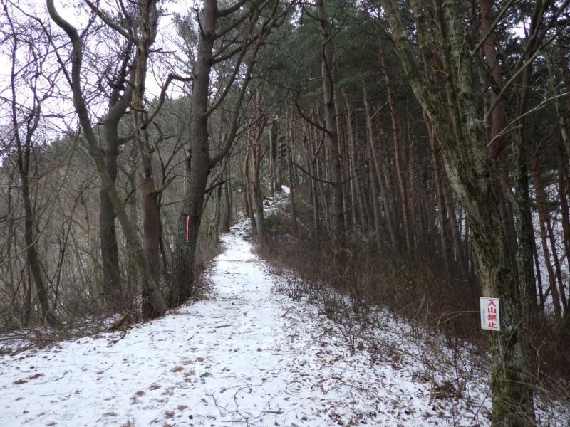 山頂まで林道があり、登っても1時間程度で登れる低山ですがこのあたりの山はほぼ山頂からの展望がよく、気軽に登れ、人気もあります。今日は昼前から雪予報なので、すぐに終わりそうなこの山を選択しました。