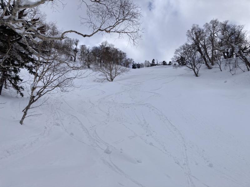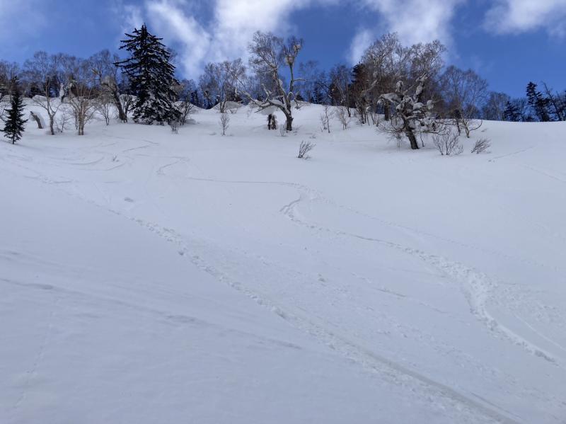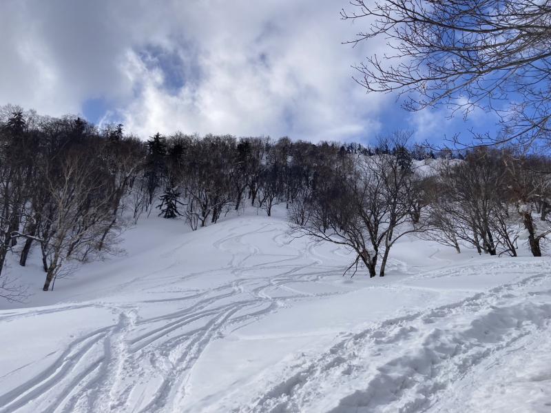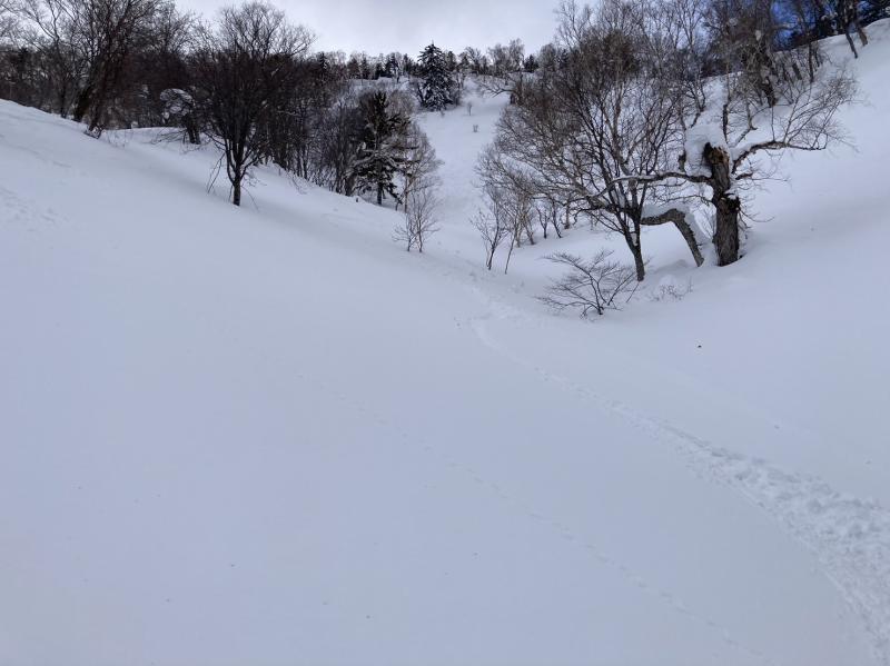 誰も滑っていないラインを滑るのは気持ちいいですね。