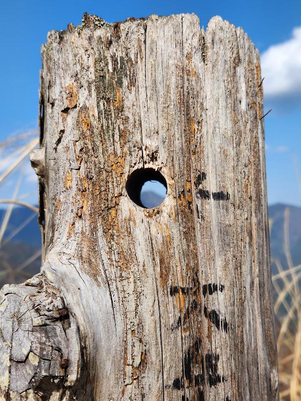 広大な馬蹄形の伐採地を気持ち良く歩いたら、903mの山頂は間もなく。頂上は木々に覆われ見通しが効かないので、反対側の展望地のあるピークへ向かいます。ここで対岸の大岳山を見ながらベンチに腰掛け、お昼の小休止を取りました。この頃くしゃみがいよいよ酷くなり花粉症のピークに。対策はしっかりしてきたつもりでしたが、涙と鼻水が止まらず酷い有り様。復帰登山は足を運びやすい奥多摩が丁度良いかなと考えてましたが、この時期スギ花粉が猛威を振るう奥多摩に足を踏み入れたのは少々うかつだったかもしれません。