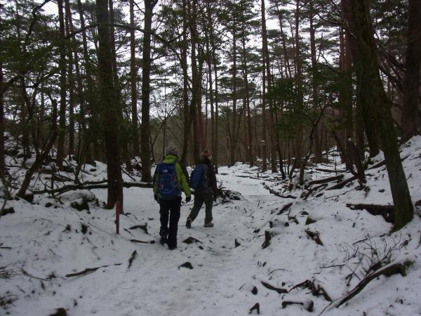 - 雪は解け始めており、靴は濡れます。凍結はほとんどありませんでしたが、軽アイゼンは準備されるほうがよいです。