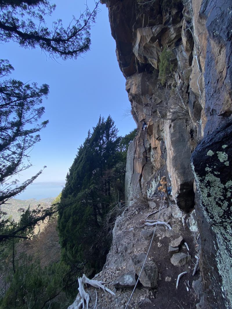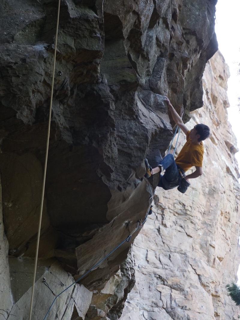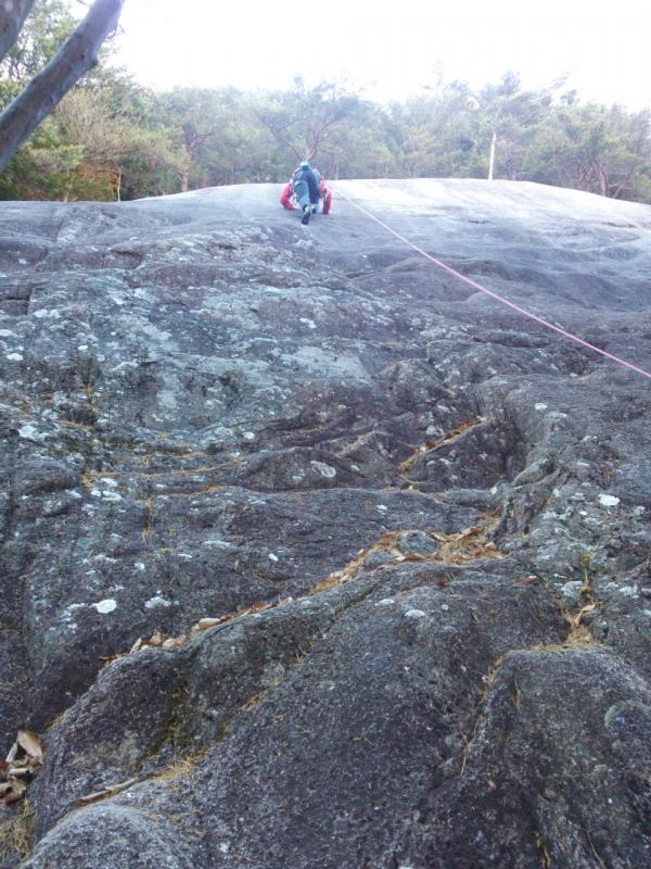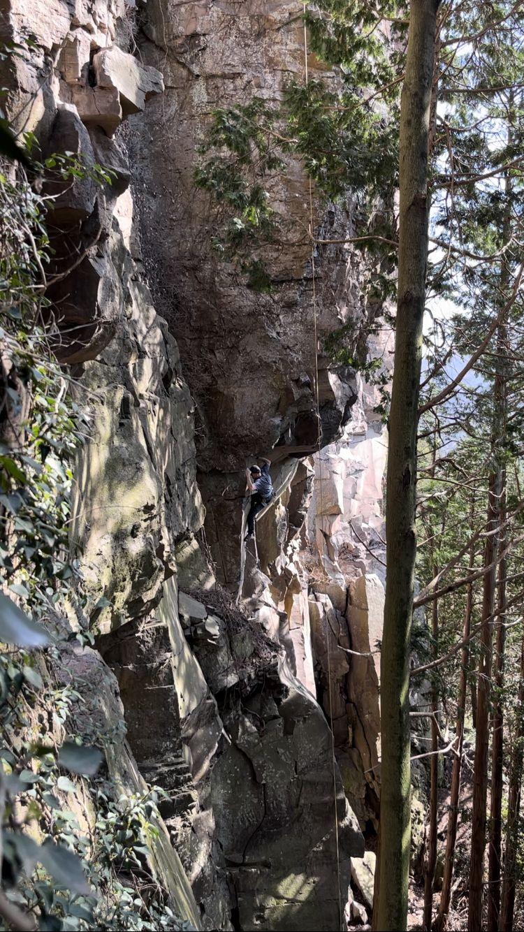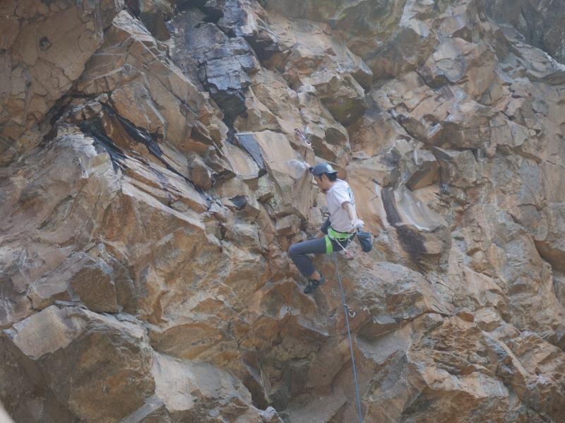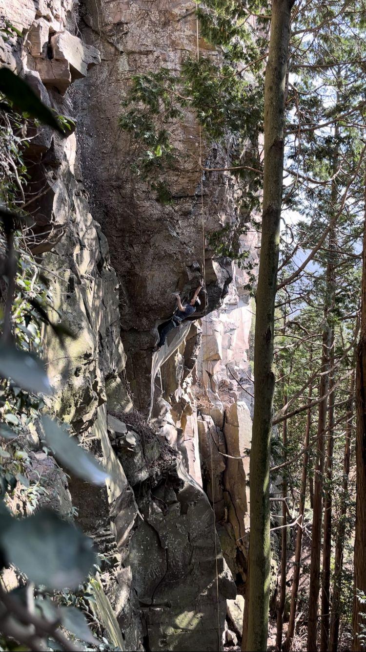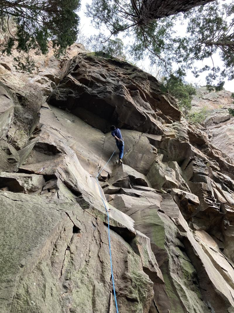 濡れているルートが多い中、全て乾いていてグレードも手頃だったので取り付きましたが、私にとってはOSギリギリなルートで、中間部の核心で心が折れかけましたがなんとか粘って登れました。