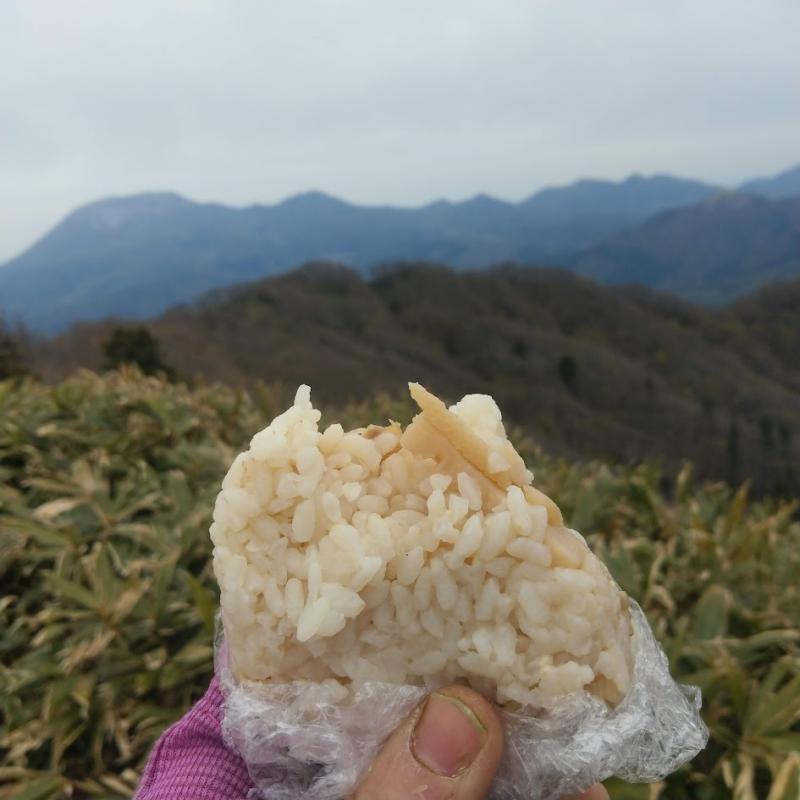 山頂で友人から頂いた「筍ごはん」の御結びが本日の昼食です。