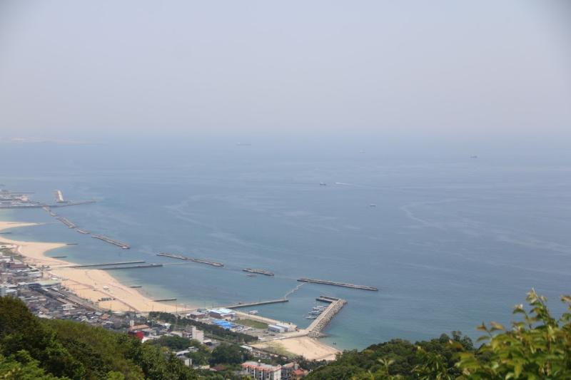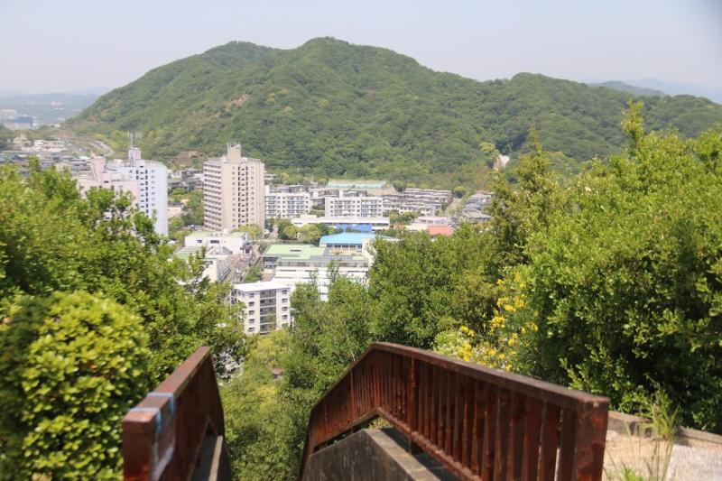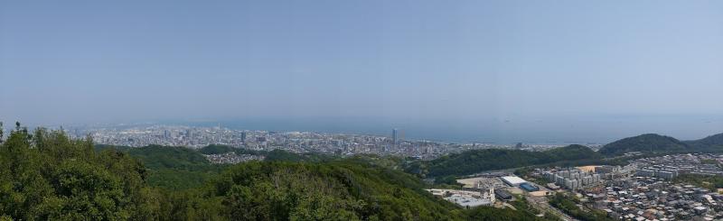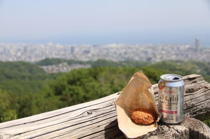 鉄拐山は最高の展望です。コロッケとノンアルコールビールで