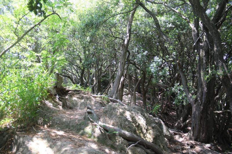 鉄拐山までは文太郎道のウバメガシの森を歩きます。急登りですが登り手応えあります。