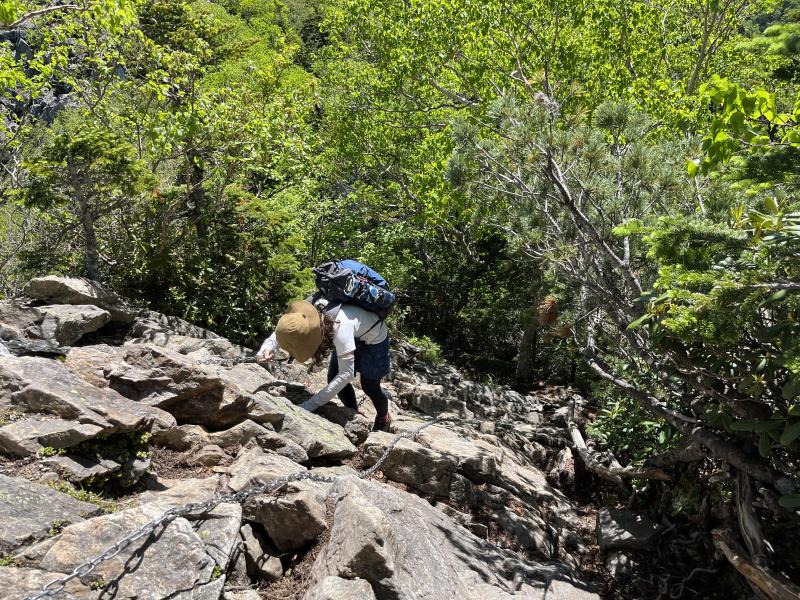 足場が悪いところや鎖場が続きます。