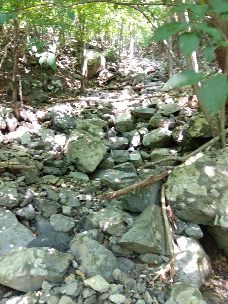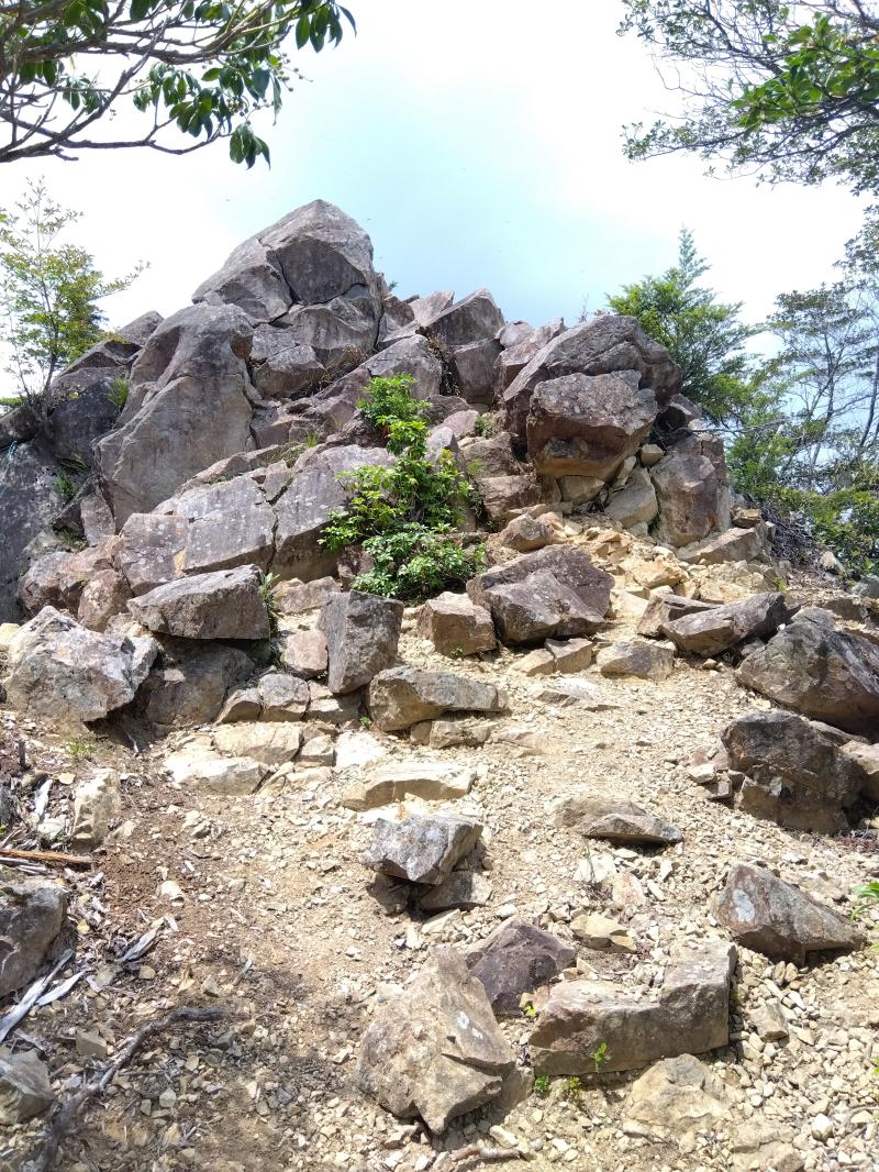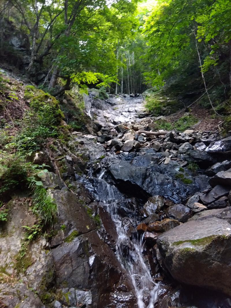 伏流とヌメヌメを何度か繰り返すと詰め上がります。藪漕ぎはありませんが、小石が崩れるようなグズグズ斜面で前飛龍の手前の尾根上に出ます。