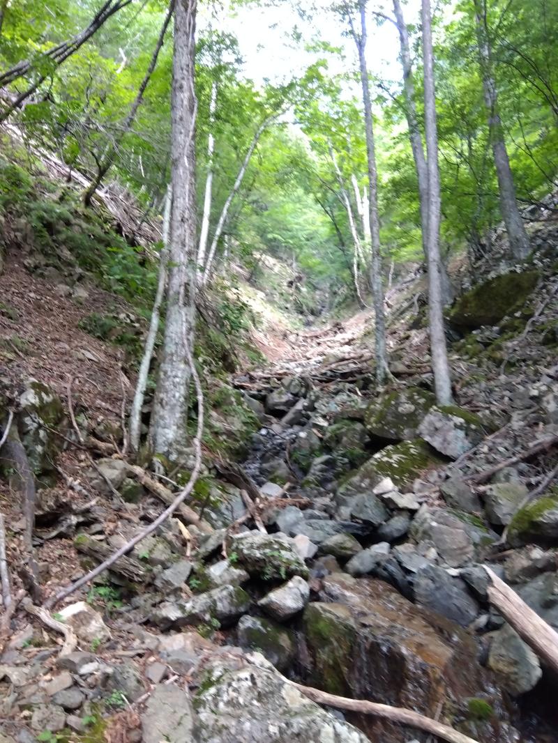 丹波川に下りるか悩みましたが登山道で、火打石谷と交わるところまで歩きます。