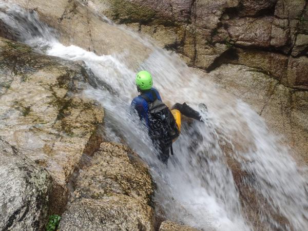 しばらく歩くと8M滝。見た目は立っていますが、ホールドは大きく直登可能。ただやはりヌメリがあるので慎重に。