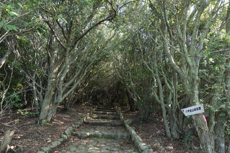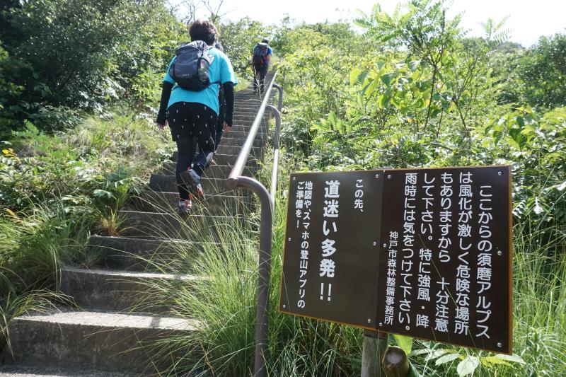 まずは鉢伏山まで。最初の延々と続く石の階段で早くも汗が噴き出してきます。