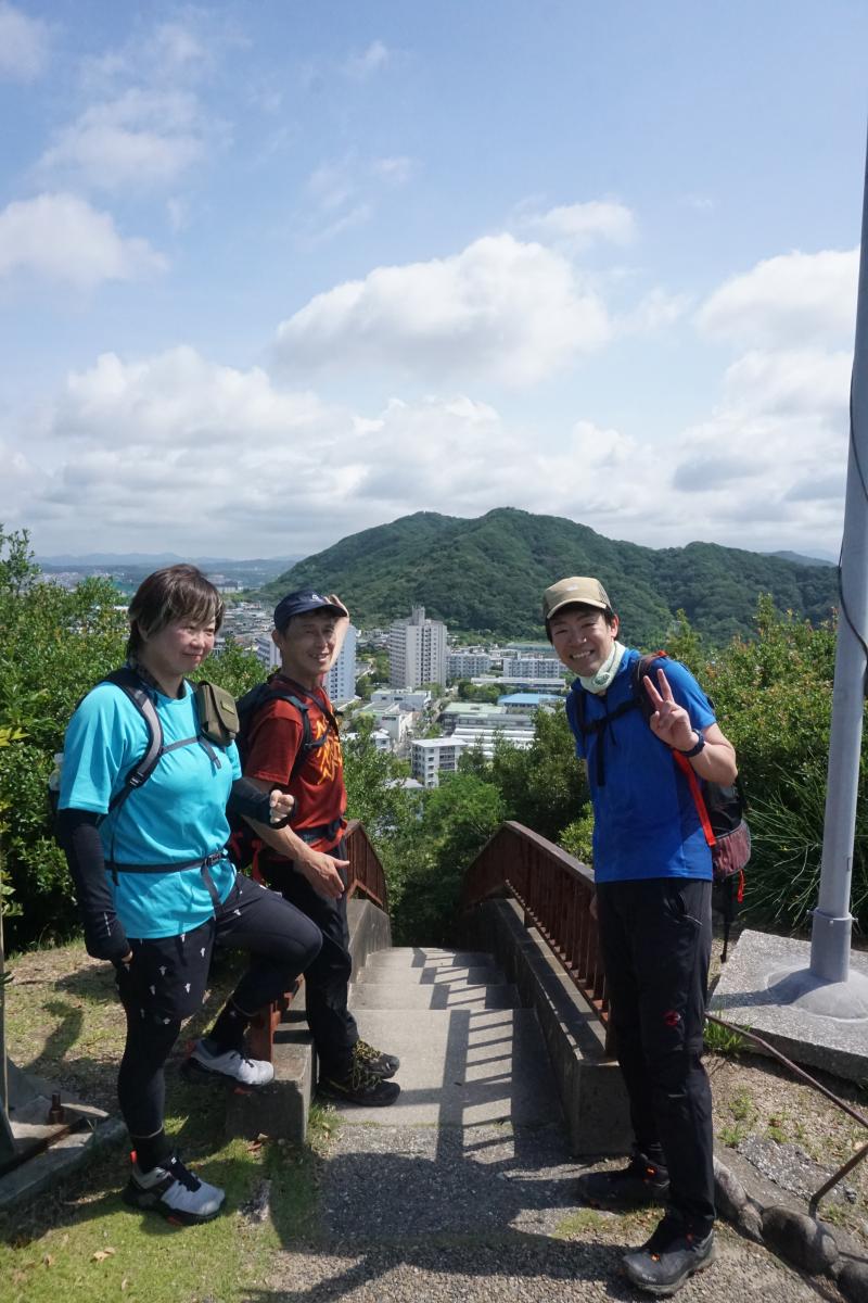 6月下旬でしたが、梅雨はどこへ行ったのやら。大変なカンカン照りでコンクリートばかりの須磨浦公園駅でじっとしているだけでも辛い。スタート前は熱中症対策に、しっかり水分補給しました。