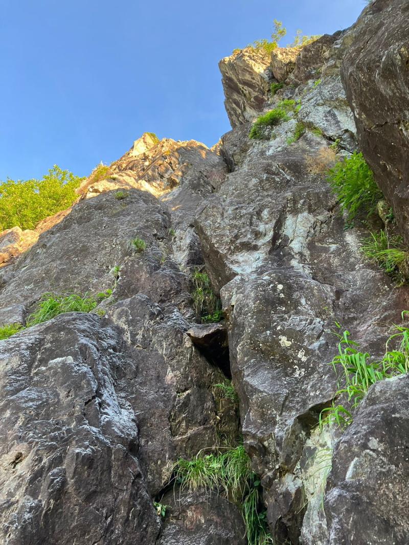 取り付きが少し分かりにくいです。左方カンテ取り付きから下に行く道の奥でした。