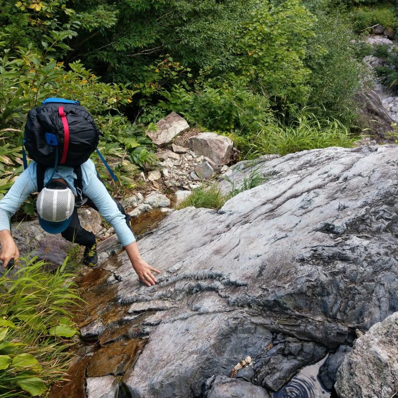 19Kほどの荷物(一番軽い)ガレガレの道 クリヤ沢過ぎてからも岩ゴロゴロです。