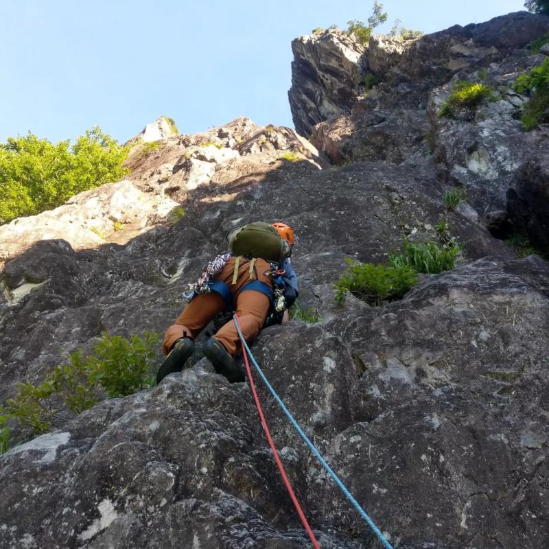 先ず取り付きまで、今回ベテランマルチピッチクライマー二名、浅いながら10台はオンサイトする強いクライマー、自分が一番へっぽこです。