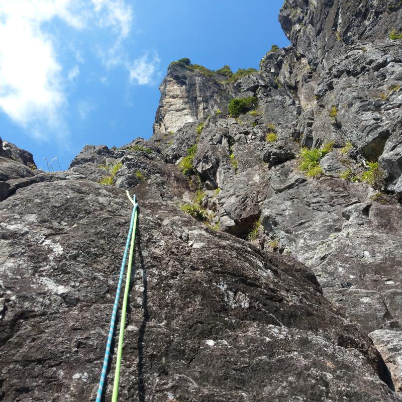 1ピッチ コチラがリードの2人とも怖かったと言われる核心でした。ハングしております。 自分は少しテンションもらい、休憩しつつ、じっくり登りました。