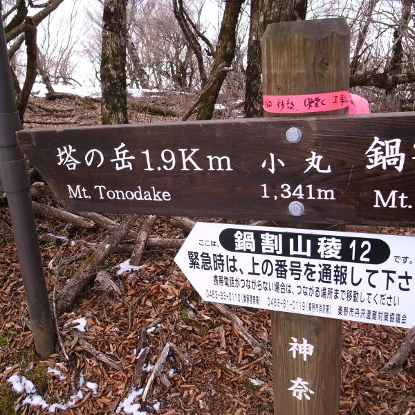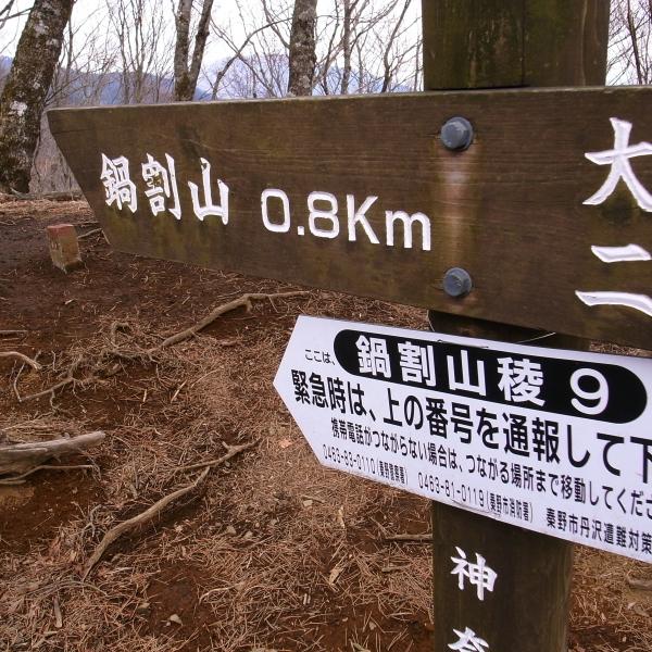 - 二俣-(0:45)-後沢乗越-(1:20)-鍋割山-(0:20)-小丸-(0:15)-小丸尾根分岐-(1:20)-二俣 エアリアタイム参照