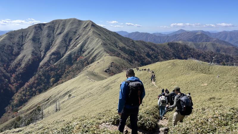 昼間の剣山登山は紅葉のキレイな週末で、しかも晴天だったのでたくさんの登山者でした。