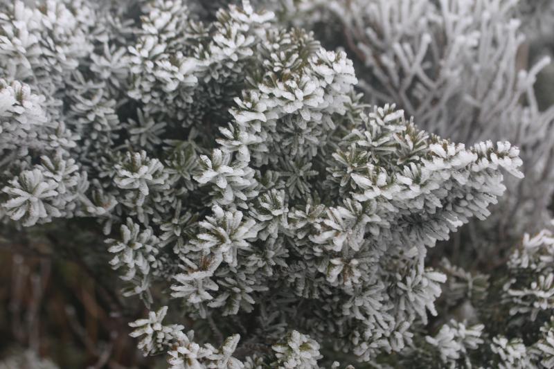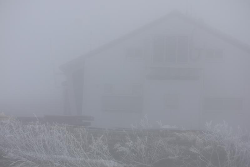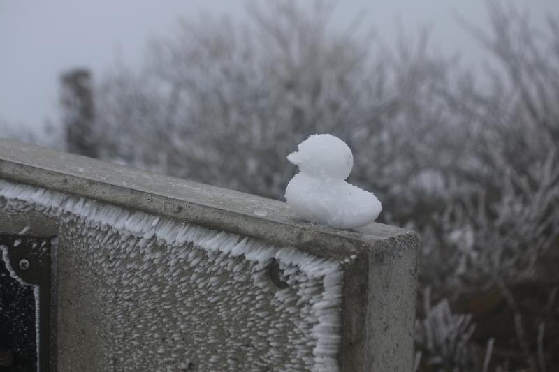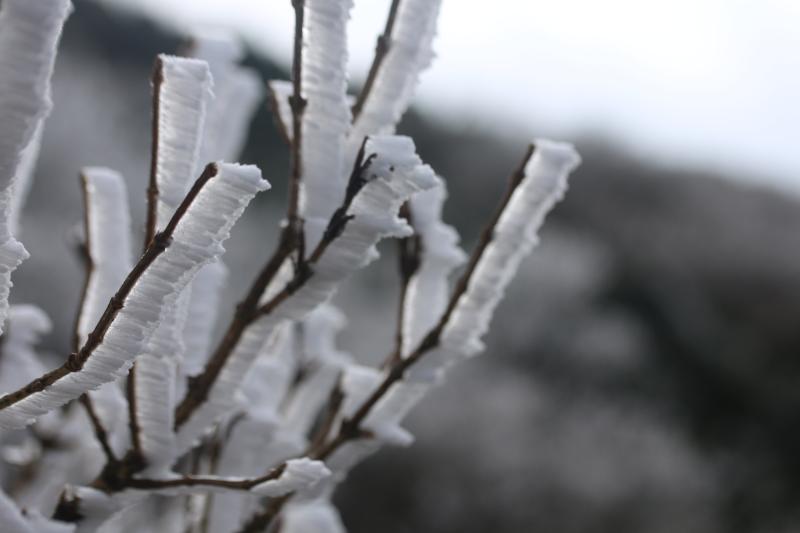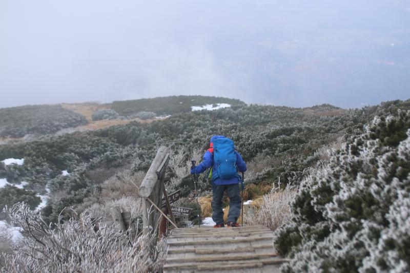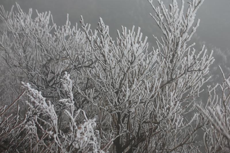 冬型の気圧配置、下ってくる方の帽子は霧氷です。