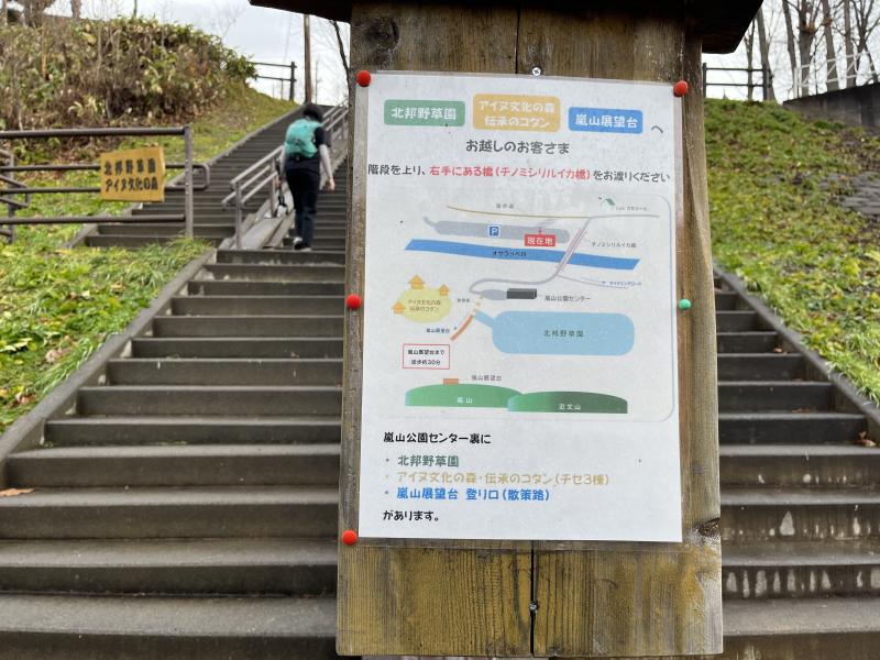 嵐山は北海道旭川市にある標高253メートルの低山で、山頂にある立派な展望台からは、市街地を一望できるだけでなく、天気が良ければ大雪山系や十勝連峰まで綺麗に見渡せます。