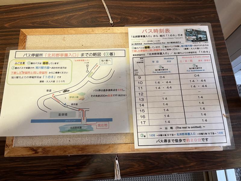 旭川駅最寄りのバス停「1の8」から③番バスで「北邦野草園入口」下車。
