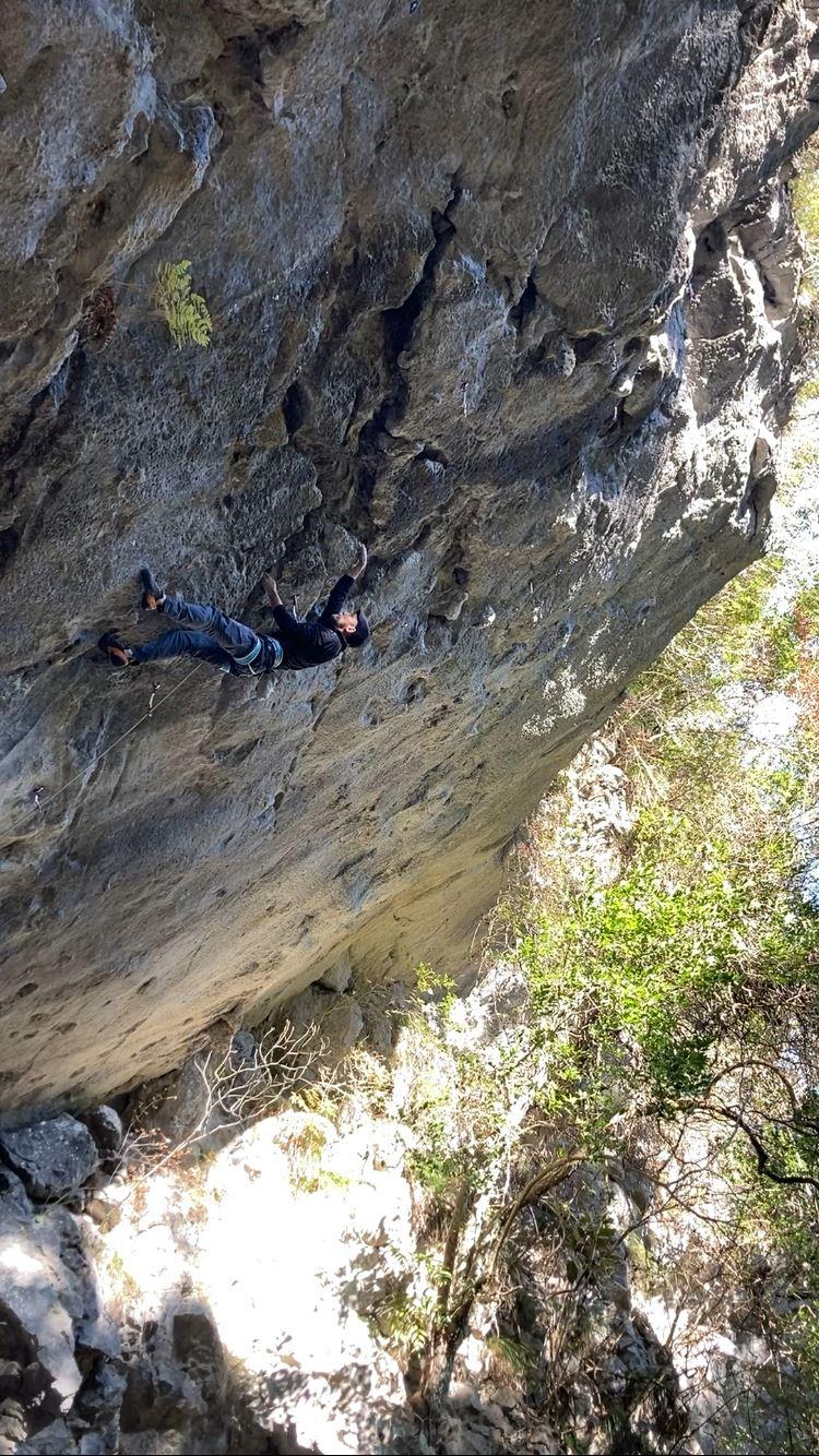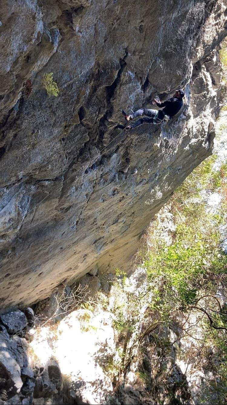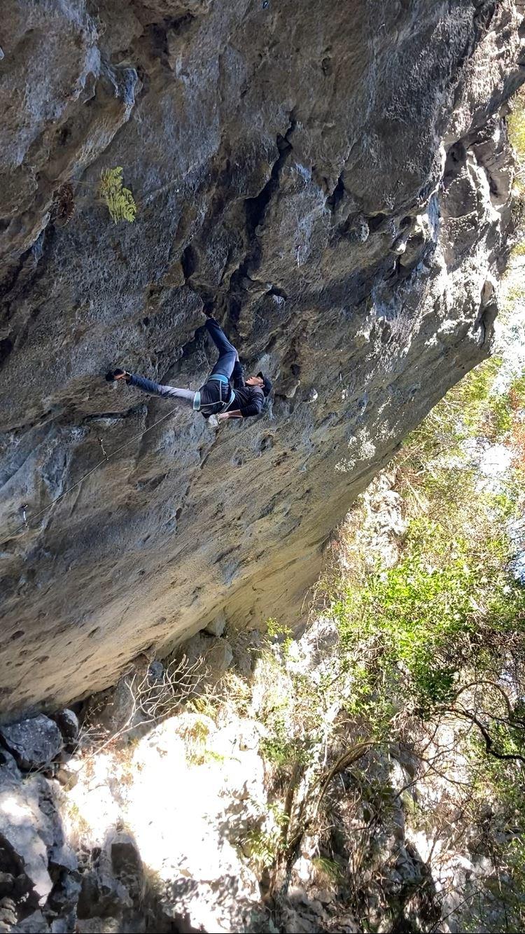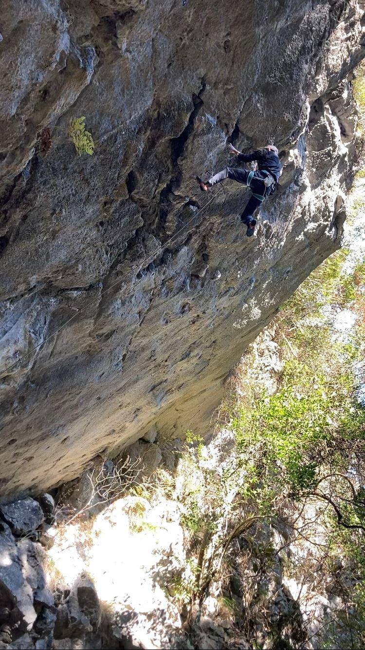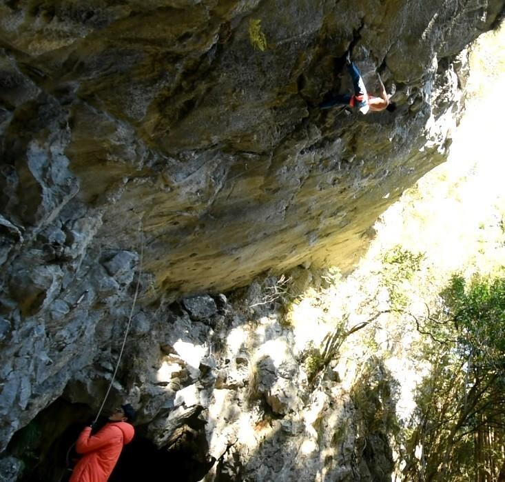 岩質は石灰岩。当日は3日ほど晴れが続いた後だったので染み出しはなかったですが、雨の後1~2日は『リョーマ』のあたりが染み出しが一番酷くなります。
