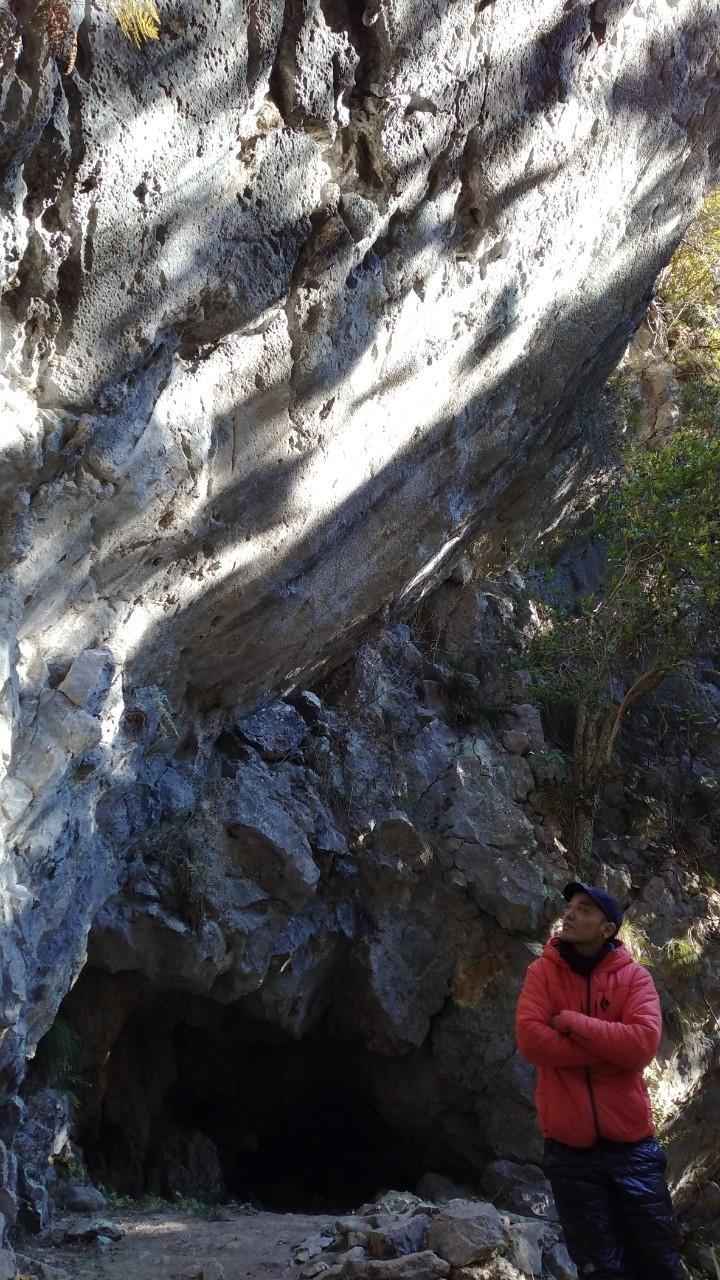 ほぼ日陰ですが、岩壁は南面なので木漏れ日が差しこんできて部分的に日が当たります。