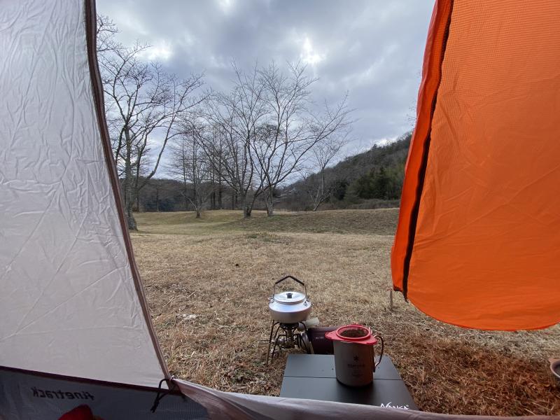 風がキツカッタので、テントに入り、前室をオープンにしながら、