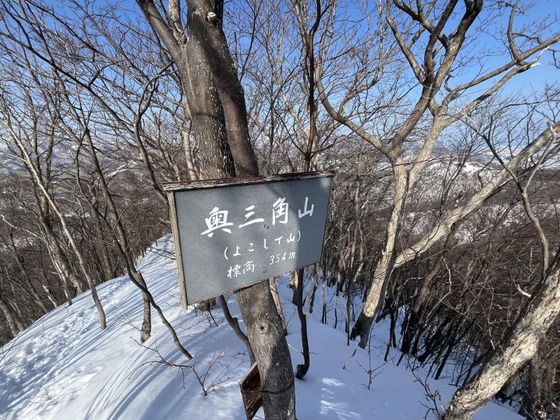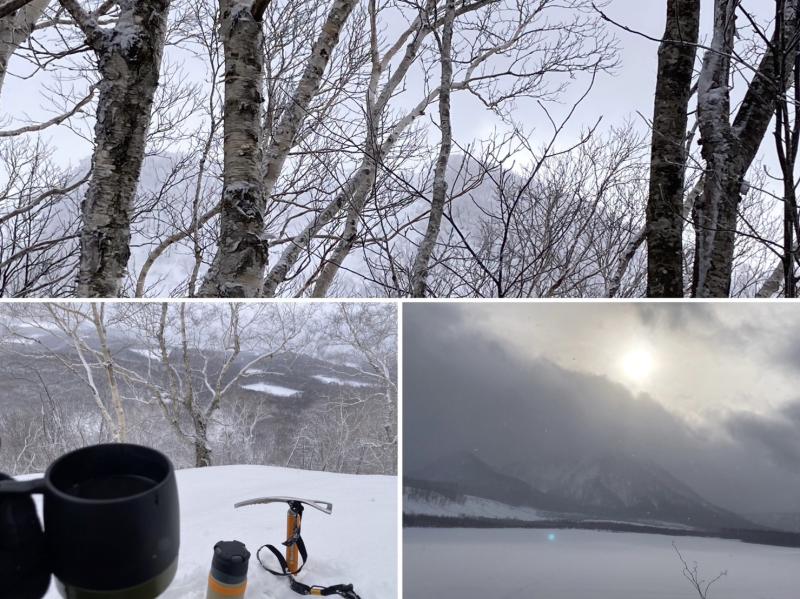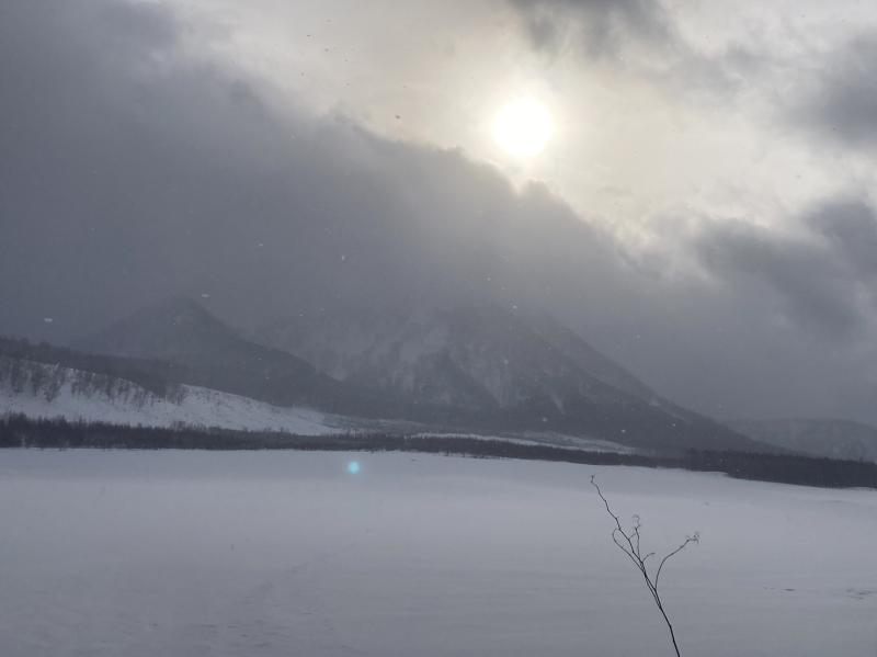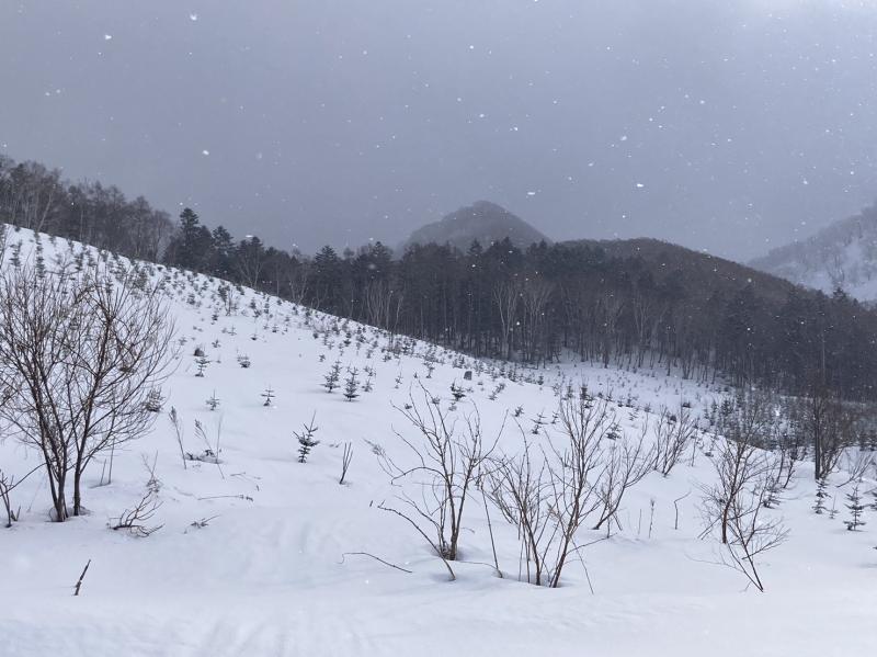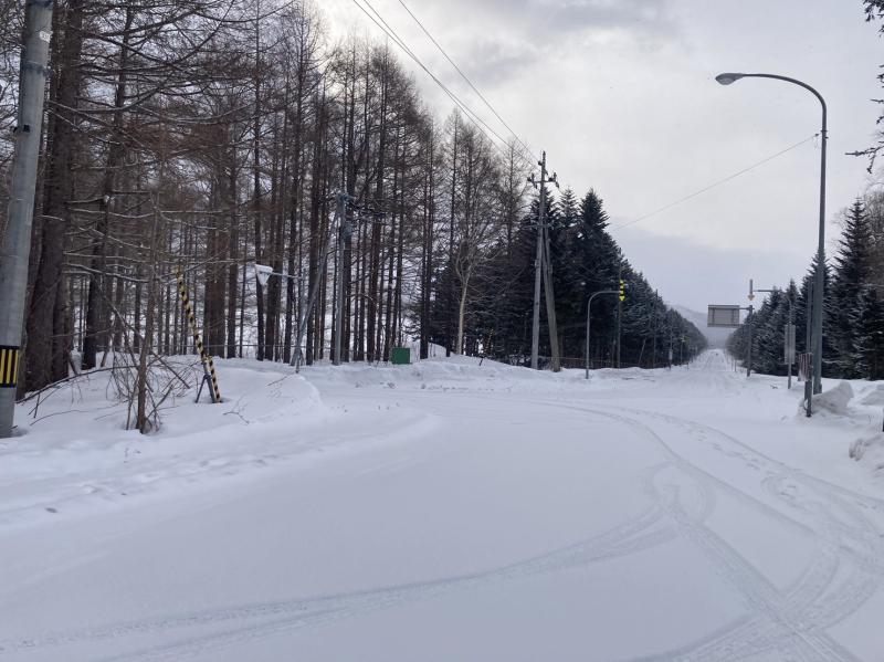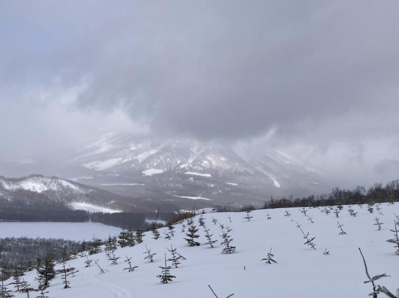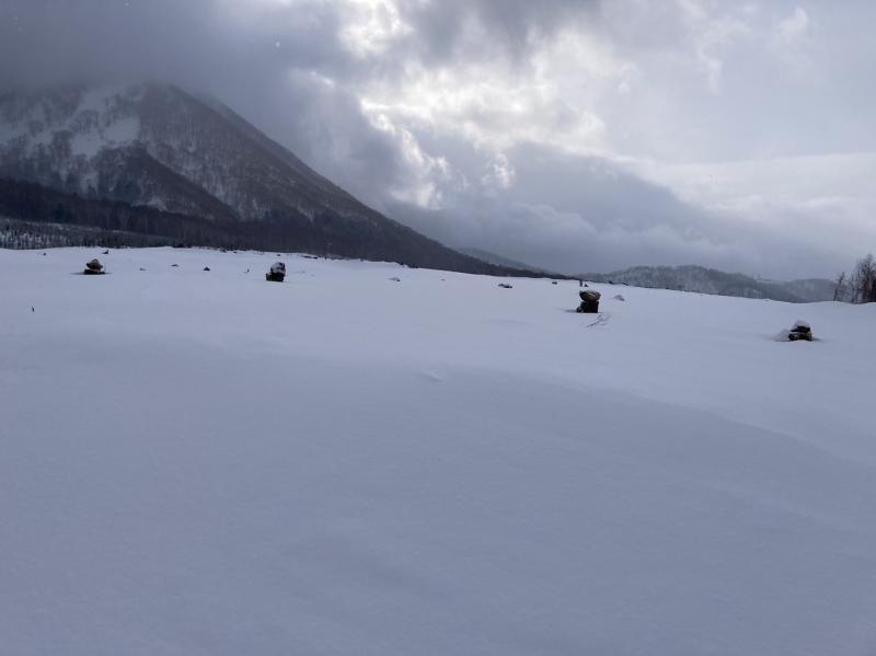 尻別岳の北西側にある冬季閉鎖中の道路の分岐点に、