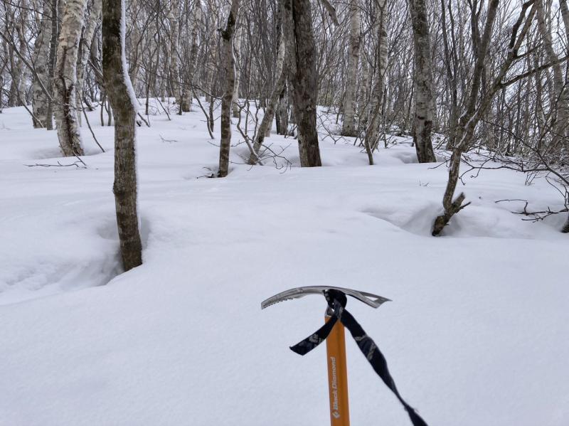 意外と歩けるので、滑落防止にピッケルを持ちつつ登ってみることに。