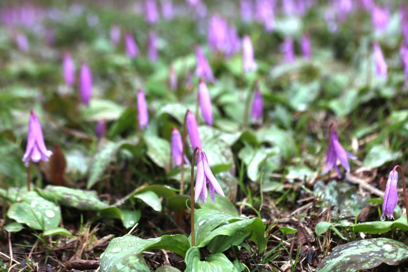全体はショウジョウバカマが一杯で、カタクリも晴れたら見頃です。
