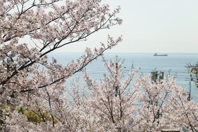 出勤前の 須磨浦公園 桜と海 (神戸市)
