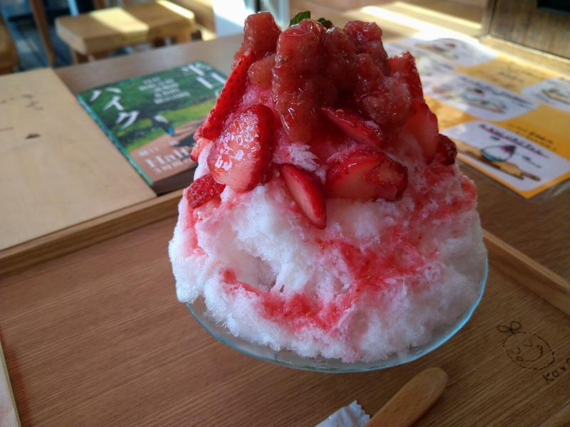 この日は気温が25℃前後まで上がり ちょっと暑さに参っていたところに「かき氷」の文字か!地獄に仏!!!木工所の小さなカフェ「木風心風堂 木かふぇ」と言うみせで「富士山天然水氷」のかき氷が楽しめました。冷たくて甘くて生き返る!そして木製スツールが物凄く座りやすい。木製なのに何時間も座っていられそう…お値段35,000円…くぅ…勢いで買える金額じゃなかった…いや、これ冗談抜きに欲しいなぁ…