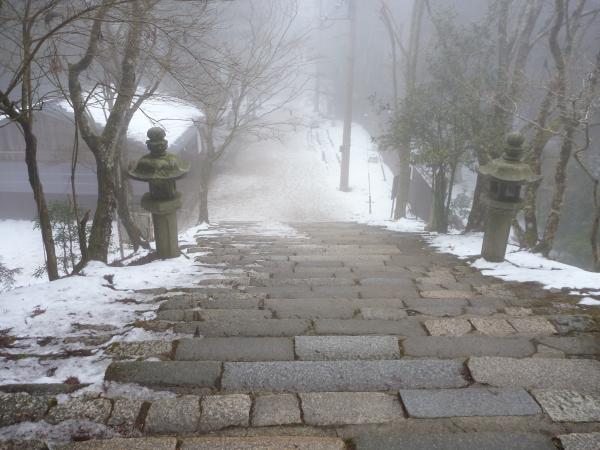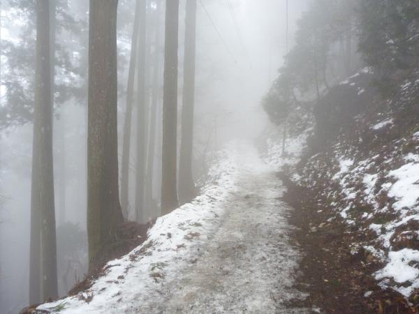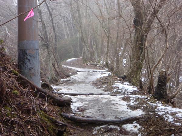 - 月輪寺コースは、ほとんど積雪は無く、山頂付近は、まだまだ雪が残っており、愛宕表参道は、踏み固められ非常に滑りやすい状況です。