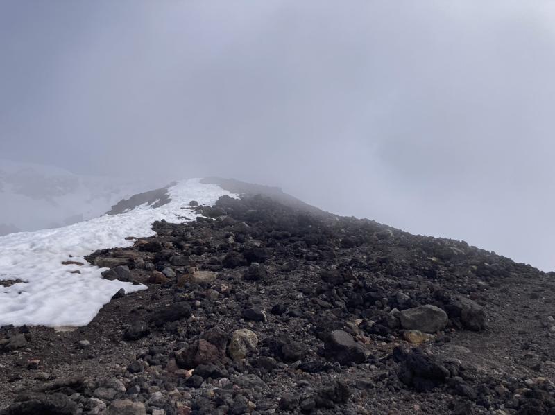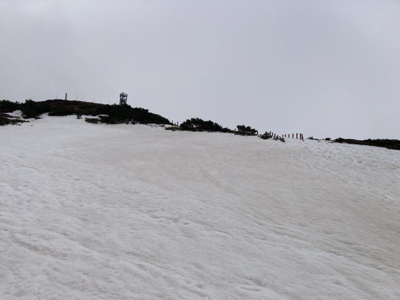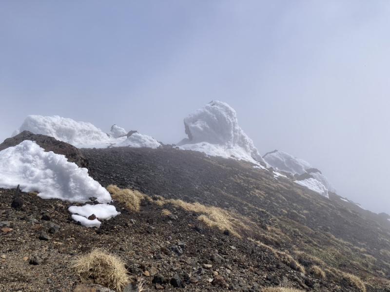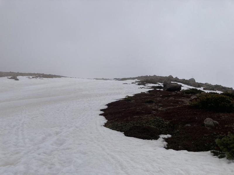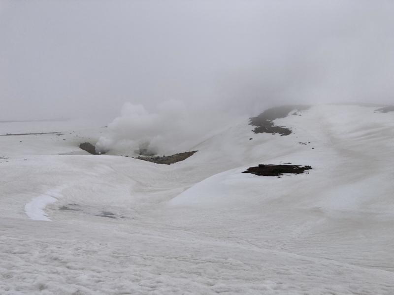 姿見の池からは登山道の地獄谷側に雪が残っていたので、