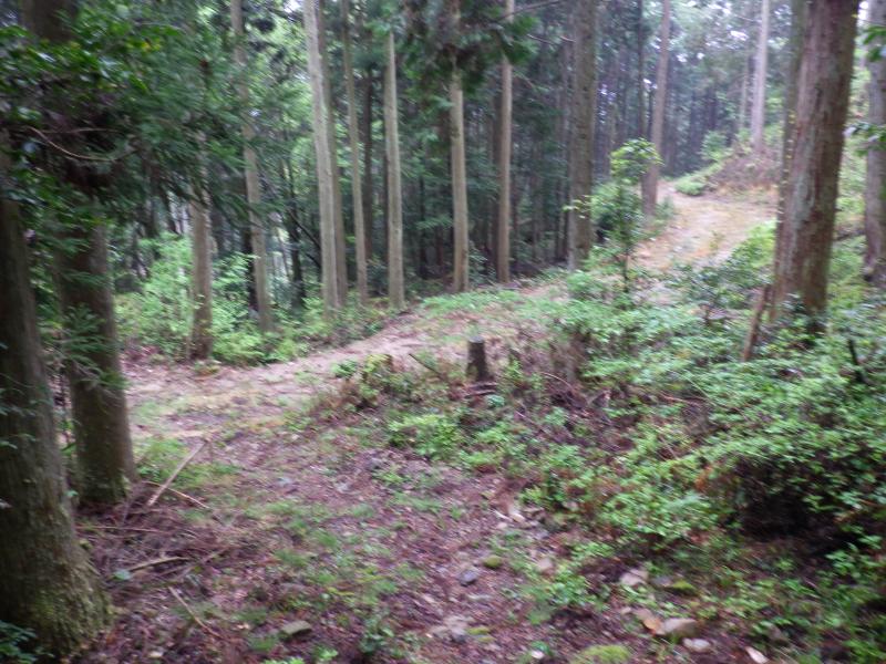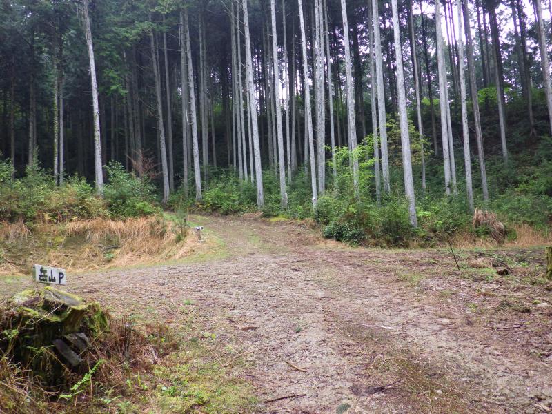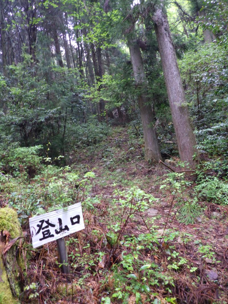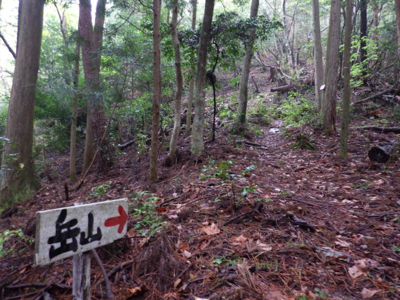 ②岳山→の看板に従い、作業道を進むと登山口が数分であります