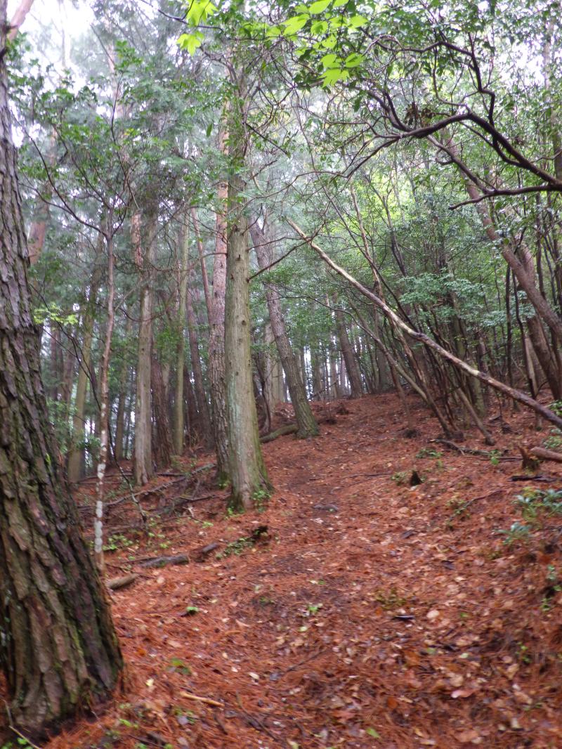 マイナーな山でも駐車場が用意されいて、道中には「タケ山」という案内標識がこまめにあり、よく整備されています。前日の雨か登山道はやや湿っていて、場所的にヒルがいるのではないかと心配するも見かけなかった。