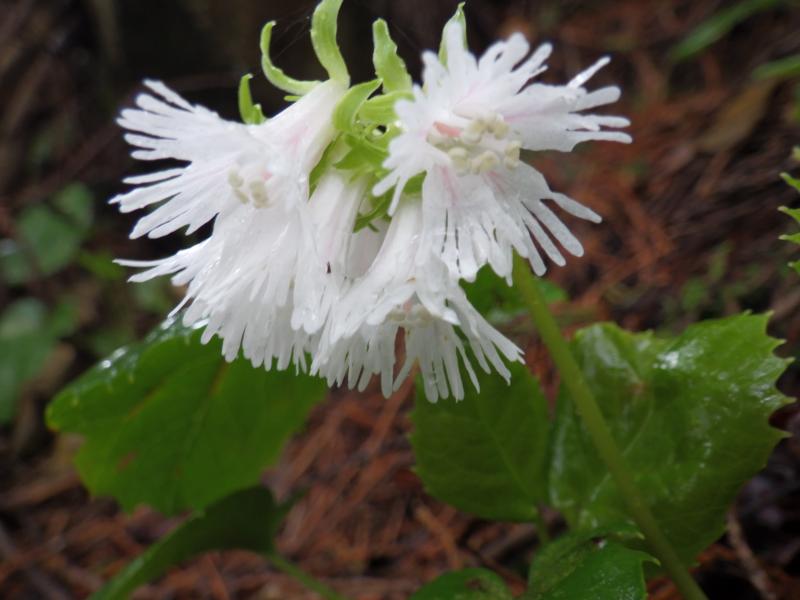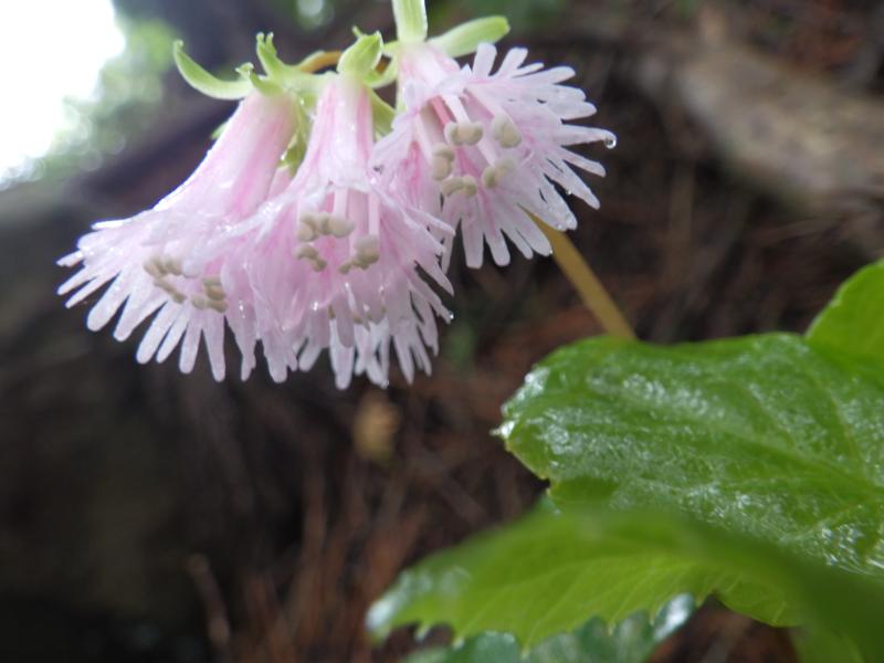 このまま終われば、面白みが全くないですが、この周辺でシロバナイワカガミの群生がありました。お土産ができたので、すぐさま下山しました。